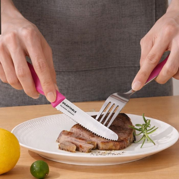 Add colour, control, and everyday performance to your kitchen with this Dilektable Serrated Utility Knife, designed for smooth slicing and reliable handling. With an 11 cm stainless steel blade and an ergonomic non-slip handle, it’s ideal for daily prep tasks from fruit and vegetables to bread rolls and soft foods.